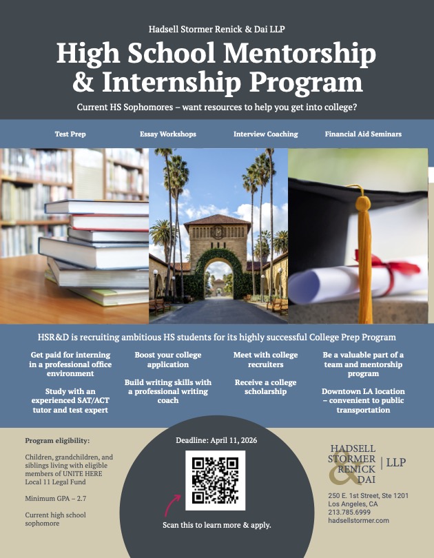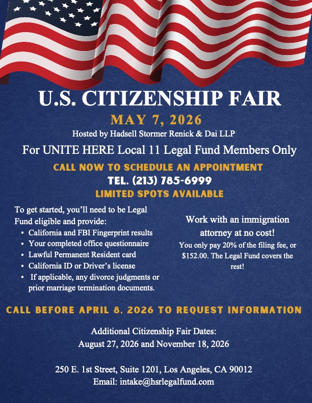 The Legal Fund Of Hotel And Restaurant Employees Of Los Angeles has no liability for the conduct of any participating Attorney. The firm of Hadsell Stormer Renick & Dai, LLP is responsible for all services provided through its law offices.