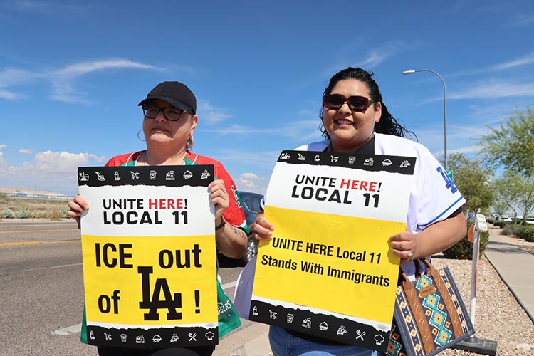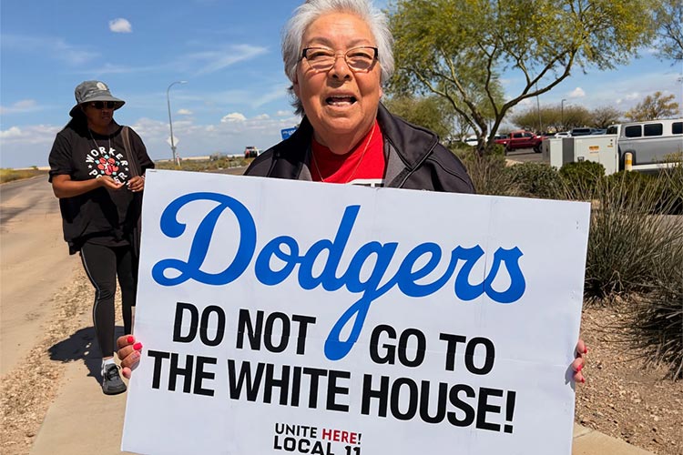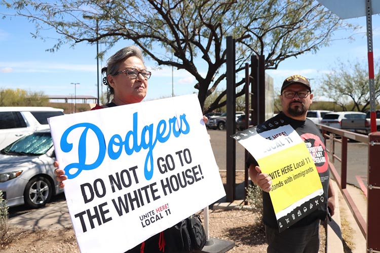 Several Dodger Stadium workers went outside the Dodger’s Spring Training facility in Camelback Ranch to call on the team to NOT GO TO THE WHITE HOUSE!