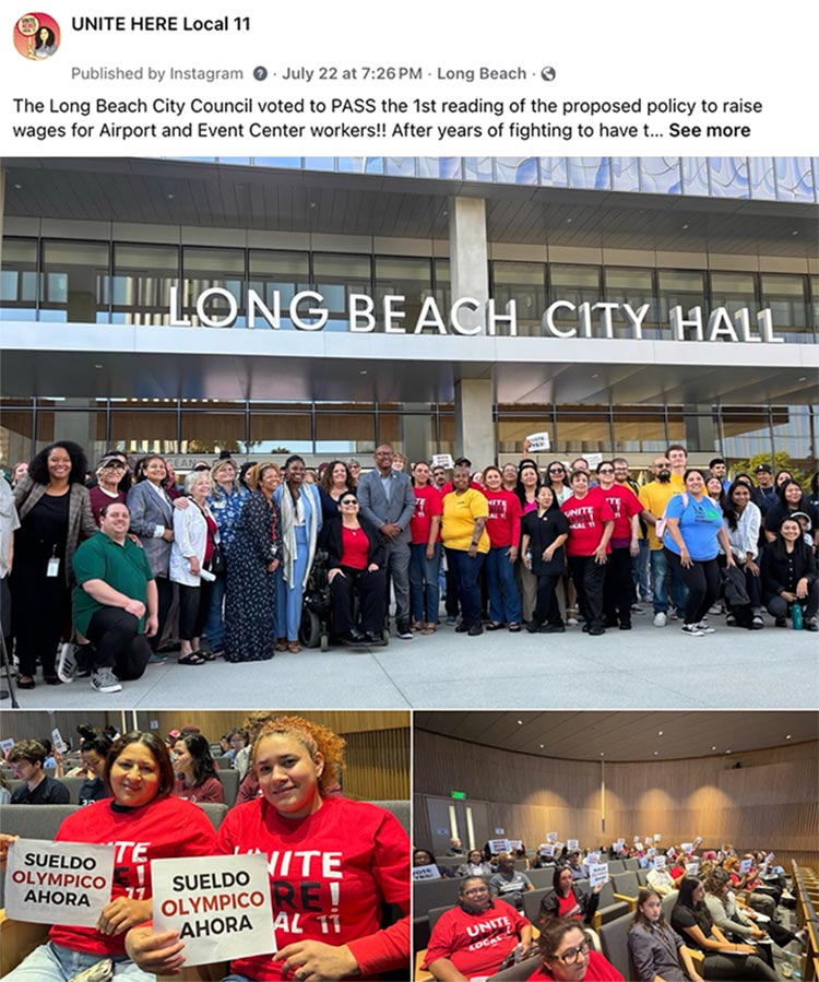 Gracias a esta victoria, los trabajadores de las concesiones ahora tendrán el mismo estándar salarial que tienen los trabajadores hoteleros cuando los votantes de Long Beach aprobaron la Medida RW, que entró en vigor hace poco más de un año.