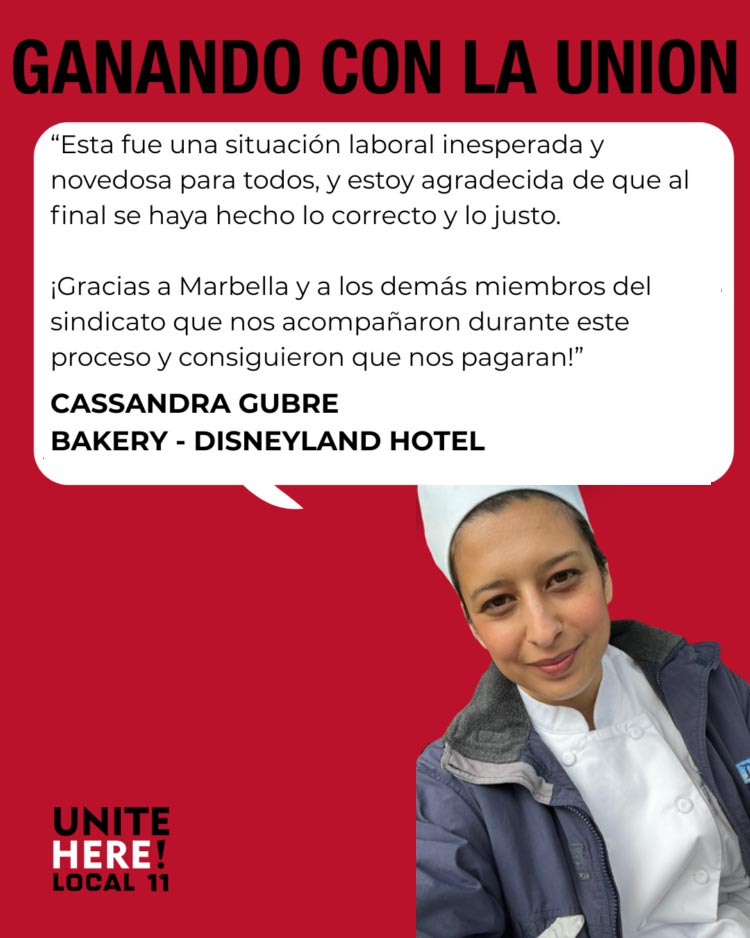 Lupita Ortiz es recamarera en el Disneyland Hotel y también es miembra de la Mesa Ejecutiva del Local 11. Y este año Lupita fue elegida como delegada del partido Demócrata de California.