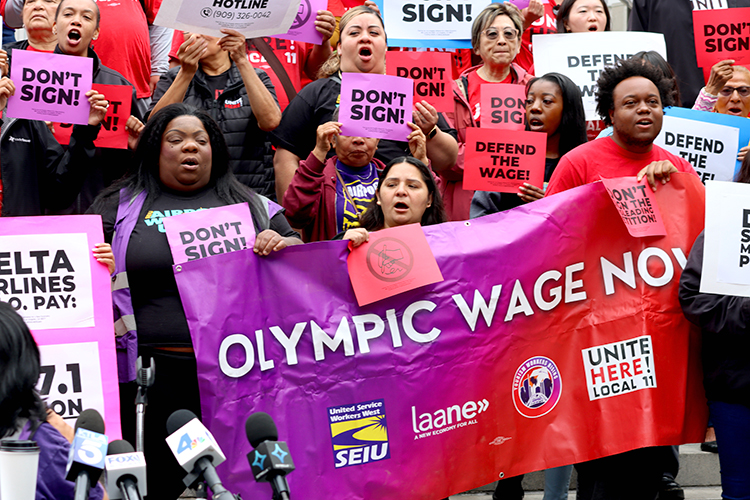UNITE HERE Local 11 trabajó con otros sindicatos y organizaciones asociadas para alertar a los angelinos sobre el intento de los patrones de sabotear el salario olímpico.