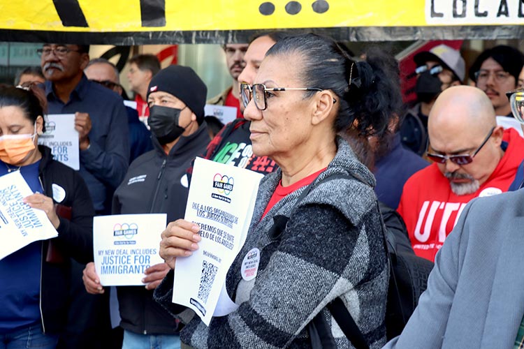 “This arena runs because of immigrant workers.” said Marisela Gomez, a Stand Lead at Crypto.com Arena, where she’s worked for 15 years. “The Olympics will only succeed because of immigrant workers. If LA wants to welcome the world, it has to protect the people who make that welcome possible.”