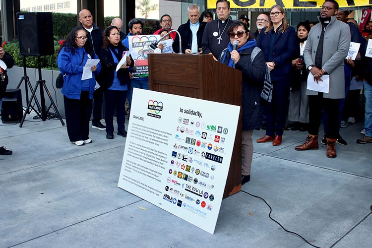 “With the city of Los Angeles set to become a mega sporting events capital of the world — scheduled to host the FIFA World Cup, the Super Bowl, the Olympic and Paralympic Games all in the next few years — labor groups pushed for what they are calling a “New Deal” to get the city and the LA28 Olympics organizing committee to make commitments to improve the lot of working people.”