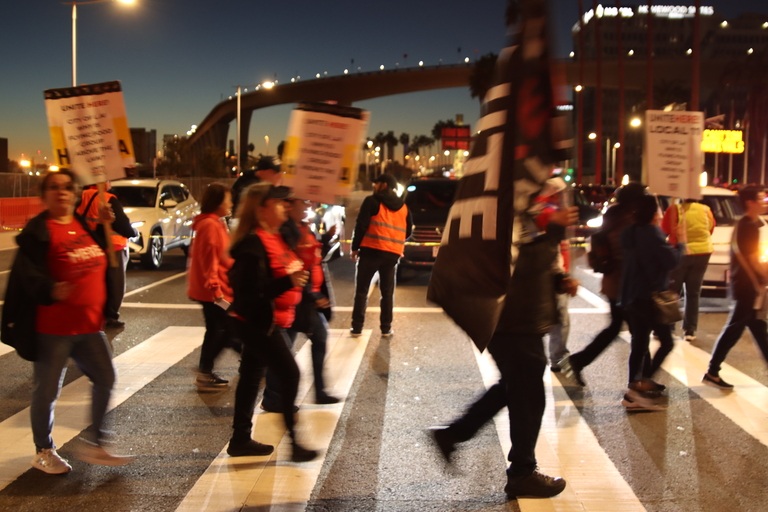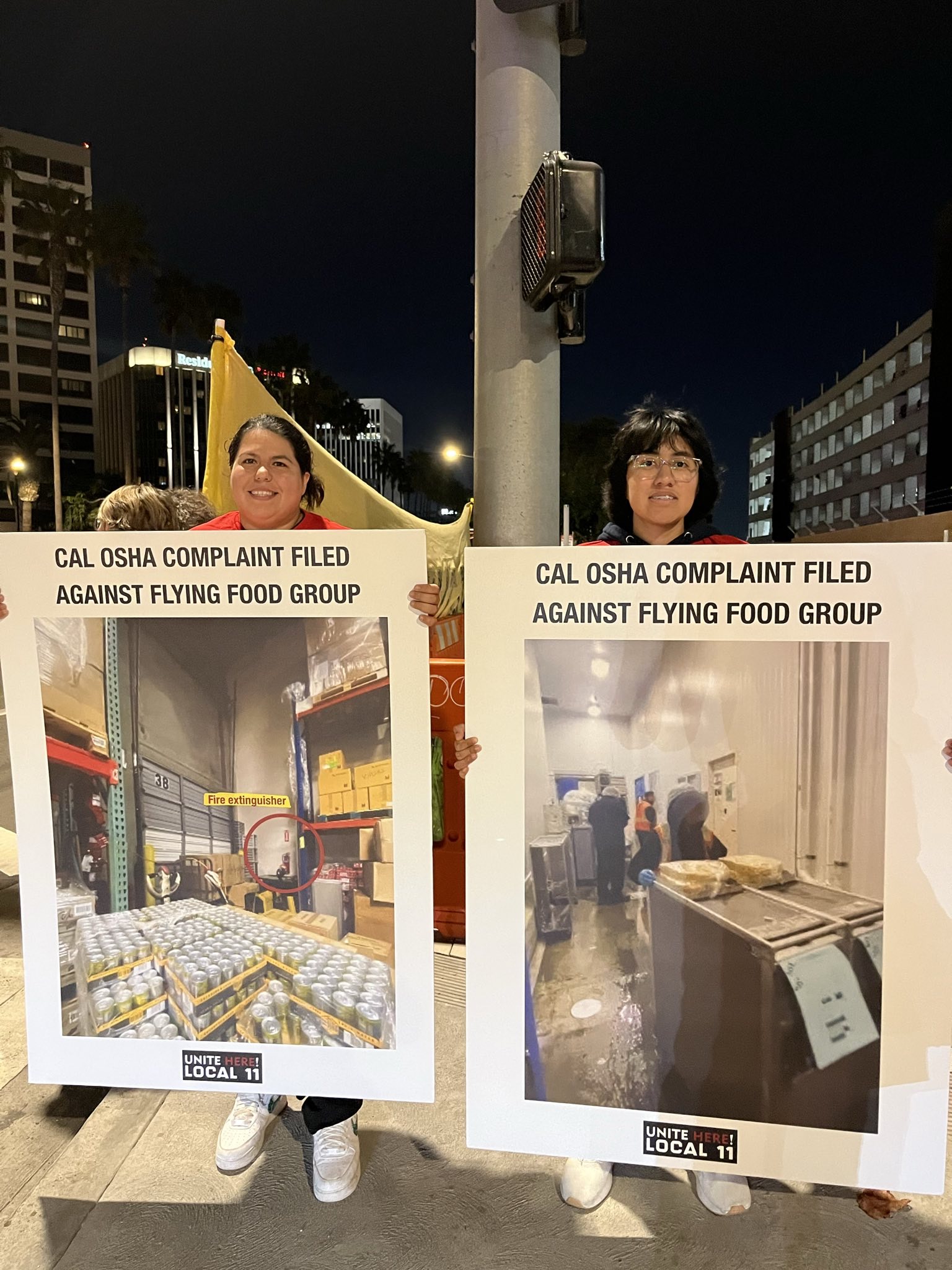 “Airline catering workers serve the international tourists who visit our city year-round, and they will serve the athletes and travelers who come here for the World Cup and the Olympics,” said Susan Minato, co-president of UNITE HERE Local 11, the union that represents FFG employees. “Our union is committed to making sure that ALL tourism workers make enough to live near where they work, can retire with dignity, and are treated with respect on the job. Flying Food Group is failing in all of these areas, and so these workers are on strike.”