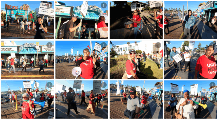 Santa Monica: Hundreds of hotel workers from multiple properties across Santa Monica, including at Le Meridien Delfina, walked out on strike demanding that hotels pay them living wages that allow them to afford housing. Workers also call upon the hotels to hire unhoused refugees who were exploited during prior strikes.