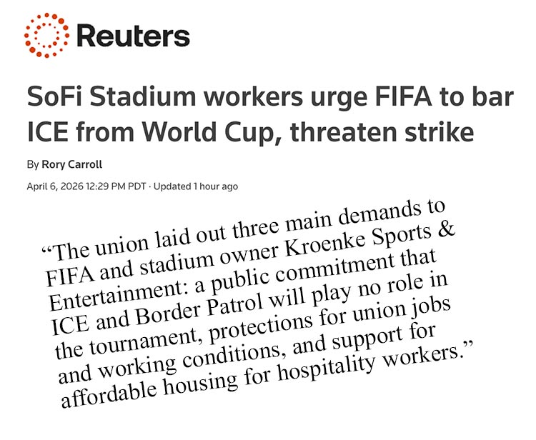 REUTERS: SoFi Stadium workers urge FIFA to bar ICE from World Cup, threaten strike