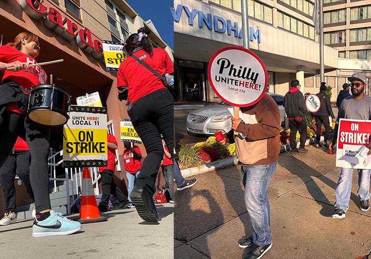 In Philadelphia, workers at the Wyndham Historic District hotel—also owned by RLJ Lodging Trust and operated by Aimbridge—walked off the job earlier today, just ahead of the Thanksgiving travel season.