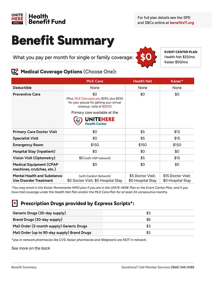 The UNITE HERE LOCAL 11 HEALTH BENEFIT FUND and the DENTAL OFFICE are located at 1122 W. Washington Blvd #300, Los Angeles, CA, 90015. Please contact your fund administration office if you have any questions regarding health benefits, problems with enrollment, the Family Medical Leave Act, dental coverage, or more. Call 866-345-5189, or send an email to [email protected] For more information visit our website at: benefits11.org