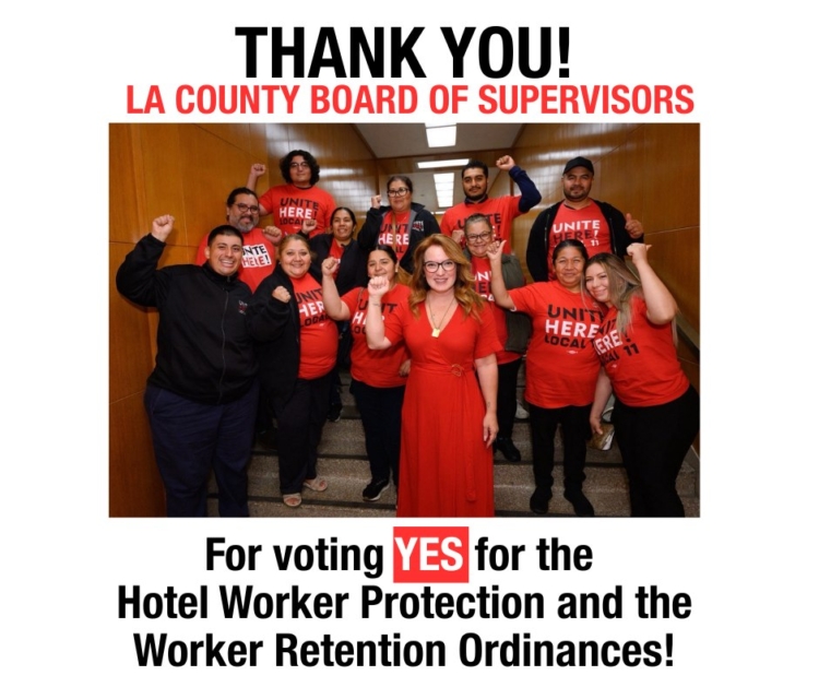 Thank you, LA County Board of Supervisors for voting YES for the Hotel Worker Protection and the Worker Retention Ordinances!