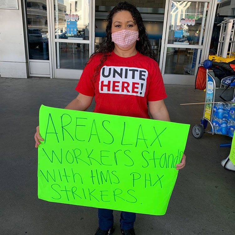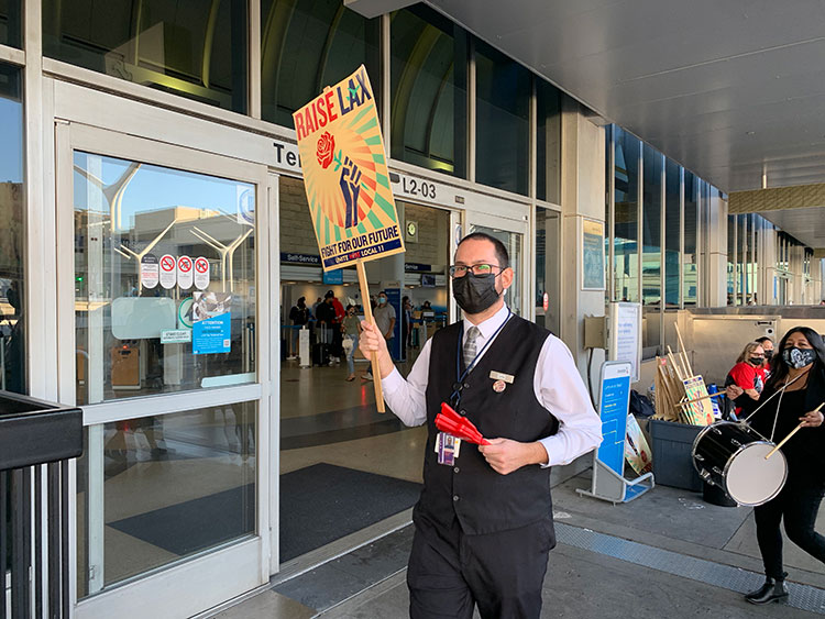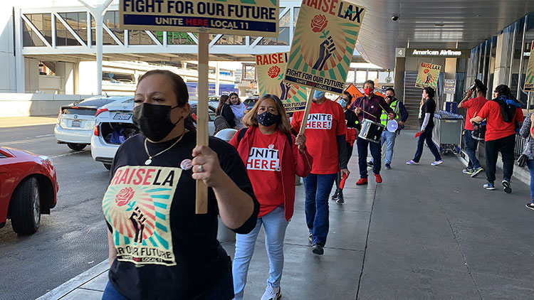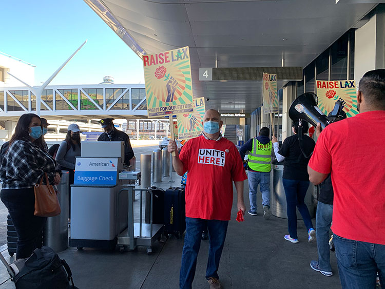 LAX workers will dedicate Wednesday’s all-day demonstration in solidarity with striking airport concessions workers in Phoenix who are also members of Local 11