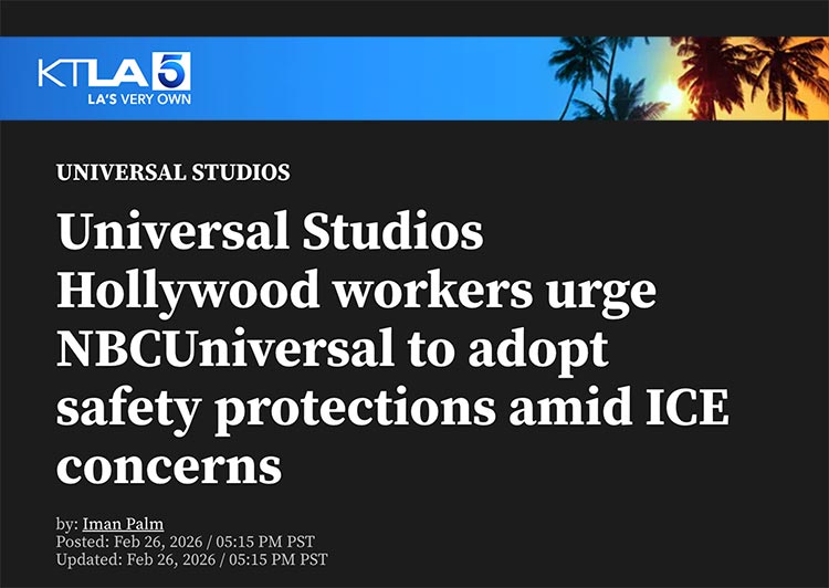 “Workers have seen what ICE agents have done in L.A. over the last year,” Victoria Stahl, a communication organizer with UNITE HERE Local 11, told KTLA. “This demand is to ensure workers are safe, especially with the World Cup coming soon and visitors arriving from around the world. Universal is a major attraction, and workers want protections for themselves and the thousands of guests who visit.”